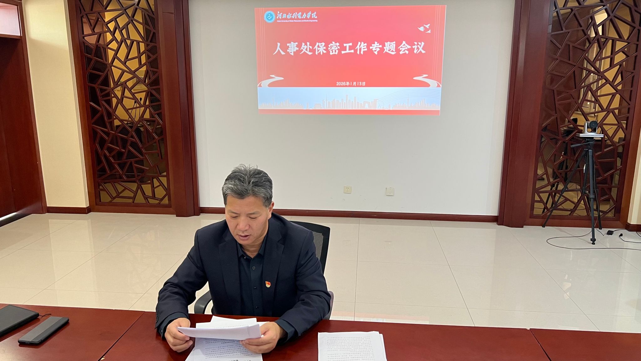 为深入落实学校保密工作部署,筑牢人事领域安全防线,2026年1月13日,人事处召开保密工作专题会议,全体工作人员参会,人事处处长宋春初主持会议。